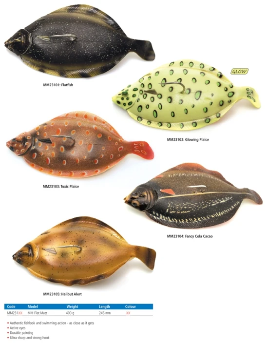 Kun valtavat ruijanpallakset asettuvat matalille, hiekkapohjaisille alueille, ne vain odottavat pienten punakampeloiden ja kampeloiden vilkkumista yläpuolella. Ja kun Flat Matt ui kuin pieni kampela paniikissa, ne eivät voi sille mitään. Et ole koskaan ennen kalastanut näin! Jigaa sitä lyhyillä, selvillä vedoilla vavalla, jotta se kiemurtelee houkuttelevan lähellä pohjaa, tai kiusaa sitä hitaasti ylöspäin pelagiselle vyöhykkeelle laukaistaksesi räjähdysmäisen reaktion.Elämänkaltainen vieheSuunniteltu valtaville turskille ja ruijanpallaksilleAktiiviset silmätKestävä maaliUlkoisen terävä ja vahva merikalastuskoukkuKoukku: Yksittäinen #10/0Lisältää vararungon